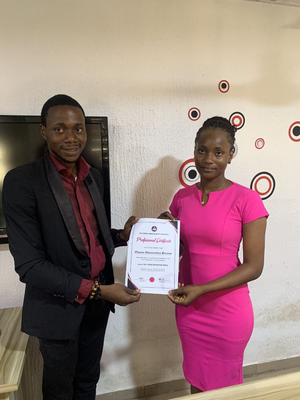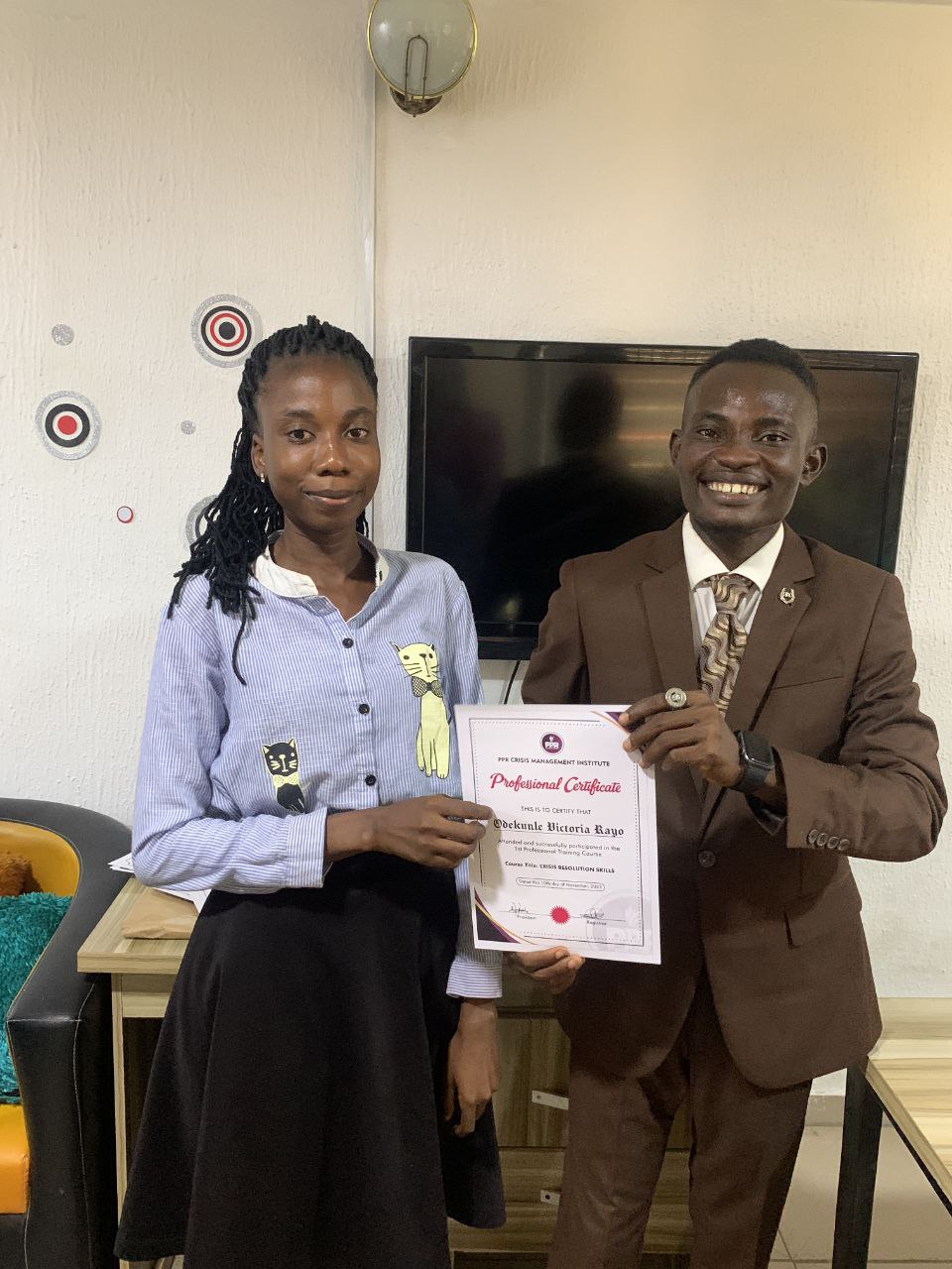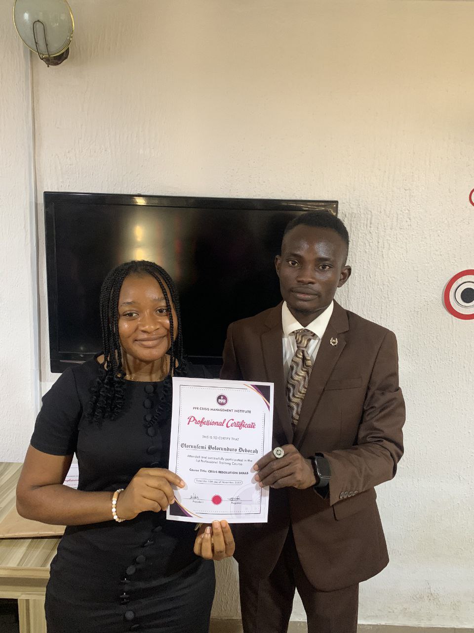I am honored to have participated in the Crisis Management training organized by PPRCMI Academy. As a Medical Laboratory Scientist, the program has significantly enhanced my interpersonal and conflict-resolution skills, which are crucial in both clinical and professional settings. The training was well-structured, insightful, and delivered with excellence. I commend PPRCMI Academy for its commitment to promoting peace and professionalism across diverse fields. Thank you for this impactful experience.